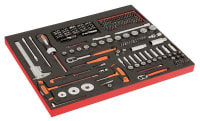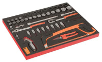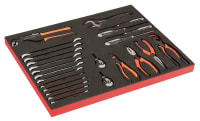 - 6 skuffer med skuminnlegg og verktøy