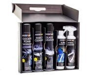Gaveeske som inneholder fem stk Motip bilpleieprodukt.