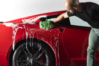 3. Vask bilen ovenfra og ned med en svamp eller vaskehanske. Ikke la shampoen tørke på overflaten.